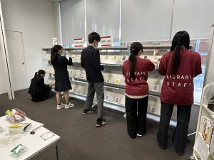 今回のディスプレイは2025年11月26日~28日に実施した多摩市立落合中学校の職場体験にて、中学生と一緒に行いました。