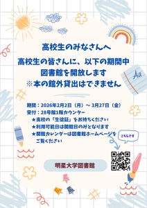 - 高校生の皆さんに春休み図書館を開放します(2/2~3/27)